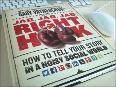 Au-delà de la forme, le contenu de ce livre traite d'un thème cher à l'auteur : l'idée de donner d'abord à l'utilisateur, à de multiples reprises, afin de s'en servir de levier pour ensuite lui demander quelque chose en retour (typiquement lui vendre quelque chose). D'où la surprenante parabole du combat de boxe qui a donné son titre au livre "jab, jab, jab, right hook" pour "donner, donner, donner puis demander".