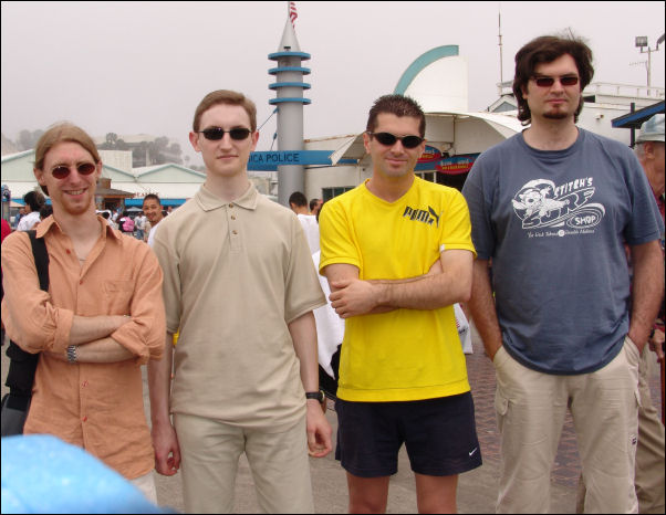 le 16 mai 2005DBardel > je crois qu’il y avait aussi un mec qui se foutait de notre gueule devant, un autre à droite, un à gauche et sans doute aussi quelques uns dans les hélicoptères qui surveillent la ville de Santa Monica :o)