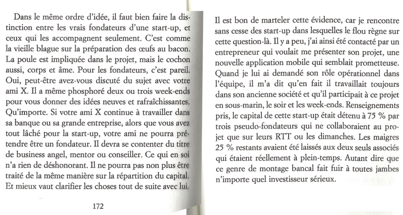 Je ne résiste pas au plaisir de reproduire ici un petit extrait du livre de Jean-Baptiste Rudelle, le fondateur de Criteo, qui parle de ce sujet important, et pas souvent traité. Le choix de ses associés et la répartition du capital font partie des premières décisions-clés quand on monte une entreprise. Autant essayer de le faire en connaissance de cause.