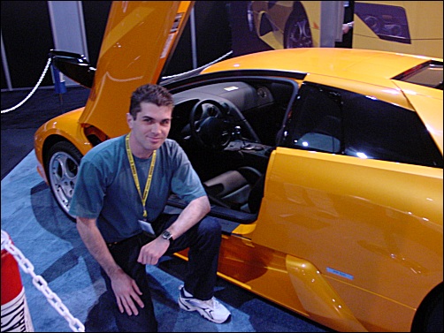 PS : En photo votre serviteur posant fièrement à côté d’une Lamborghini Murcielago lors de l’E3 2002 (j’me demande si je ne l’ai pas déjà mise sur ce blog d’ailleurs !).