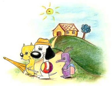 3) Travaux d’illustration pour des auteurs indépendants, ou des éditeurs. Avec une spécialisation : les illustrations enfantines, et les livres ludo-éducatifs (plusieurs travaux déjà publiés). Les deux images qui agrémentent cette note font partie de ce travail d’illustration.