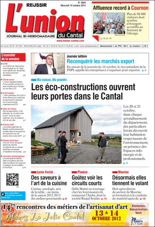Alors pour les non cantalous, L'Union n'est pas un site de rencontre, et n'a rien à voir avec le magazine érotique éponyme ! Je veux parler du journal auvergnat "L'Union du Cantal". Quand j'étais gosse, il s'appelait L'Union Agricole et Rurale. J'ai encore en mémoire ses jingles audio qui passaient en boucle sur Radio Saint-Flour durant mes années lycée ! Bref, L'Union, c'est un journal destiné aux agriculteurs et habitants des campagnes cantaliennes au sens large. Je m'y suis abonné la semaine dernière. Pour une raison bien précise.