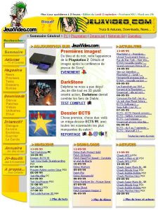 Puisque je vous parlais hier de l’ECTS 99, voici la homepage de jeuxvideo.com contemporaine de cette époque. J’avais pris cette capture d’écran à l’intention d’un journaliste de presse généraliste qui voulait des visuels pour illustrer un article.