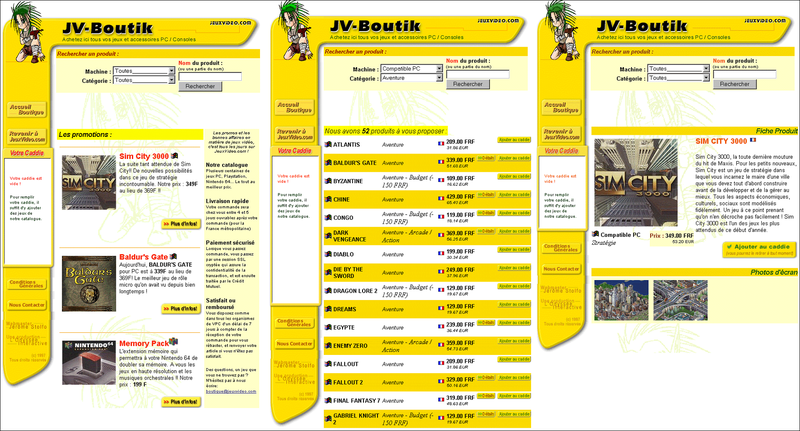 Par chance, je viens de retrouver 3 captures d'écran de cette boutique que je n'avais pas revue depuis une décennie ! De gauche à droite :