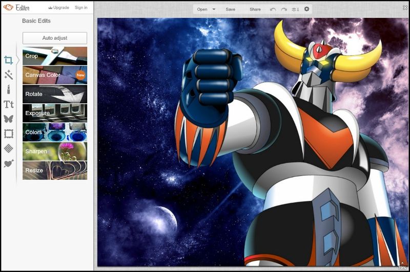 Redimensionnement, modification de contrastes, de luminosité, ajout de texte, et d'un cadre. Tout y est et même plus (on peut par exemple enlever les rides de visage). Un petit bijou de simplicité. Avec les limites d'un logiciel grand public : on ne peut pas détourer, mais qui détoure ses images quand c'est pour les poster sur un blog ou une page Facebook ?