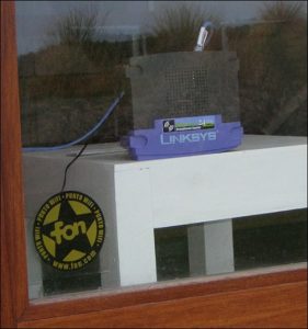 Mais que propose FON ? C’est la création d’un réseau global d’internet mobile en wifi, réseau alimenté par des millions d’utilisateurs partageant leur propre connexion. Pour participer à ce réseau global, il faut s’inscrire à FON (et devenir un "fonero"). Vous pourrez ainsi partager votre connexion internet en la rendant accessible à l’extérieur de votre domicile grâce à un routeur wifi posé sur le rebord de votre fenêtre (cf photo). Alors, les gens qui passent à proximité de chez vous pourront utiliser votre connexion internet pour surfer sur le web. Une sorte d’internet collaboratif, très proche des intentions des pionniers du réseau. Idée séduisante s’il en est.