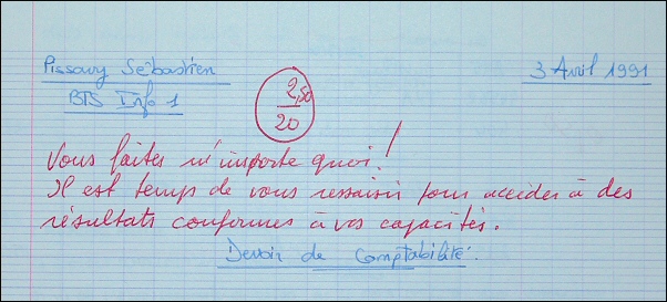 Du coup, je pensais n’avoir rien appris dans cette matière. Mais finalement en 1997 quand on a monté la boîte, c’est moi qui ai dû m’occuper de la compta de la jeune SARL, et ce pendant nos deux premiers exercices comptables ! Heureusement qu’à l’époque je n’avais pas montré ce genre d’exploit scolaire à mes associés, sinon ma crédibilité de comptable en aurait pris un coup 🙂