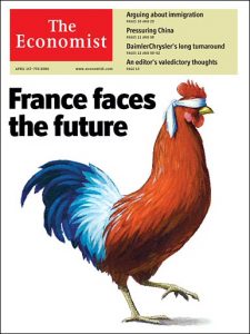 Comme je l’indiquais dans une note récente, l’image de la France à l’étranger en a pris un sacré coup ces derniers temps. D’abord avec les émeutes de l’automne dernier, mais plus encore depuis plusieurs semaines avec les manifs anti-CPE. Regardez par exemple la couverture actuelle du magazine de référence The Economist. On y voit un coq les yeux bandés, symbolisant la France qui avance en refusant de voir les réalités du monde moderne. L’image n’est déjà pas très reluisante, ni pour le français moyen ni pour ses politiques, mais les mots sont plus précis : l’éditorialiste s’étonne, en effet, de voir autant de monde dans les rues de France pour protester contre une mesure d’un "gouvernement de centre-droit" qui vise à injecter une "mini-dose de libéralisme" dans le "très rigide marché de l’emploi français". Au-delà du CPE, le journaliste précise que la principale difficulté de la France, c’est son incapacité à s’adapter à un monde en évolution.