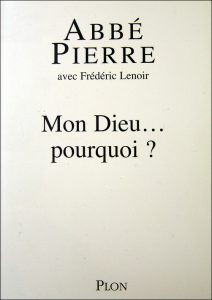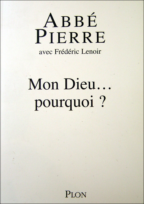J’ai lu cette semaine le dernier livre de l’Abbé Pierre, qui a récemment défrayé la chronique dans la presse. En effet, d’après les journalistes, pour la première fois, l’Abbé Pierre confessait qu’il lui était arrivé, de façon passagère, de ne pas respecter son voeu de chasteté… Ce n’est pas vraiment pour cela que je l’ai acheté, mais surtout parce qu’on m’a conseillé de le lire.*