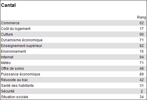 Enfin, ce qui est plus intéressant, c’est de connaître le détail pour les principaux critères concernant le Cantal (capture ci-jointe). On remarque quelques points positifs, ils sont connus :