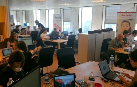 Samedi dernier, avec une douzaine de coworkers et d’adhérents de Catapulte motivés, nous avons repeint notre espace de coworking qui manquait sérieusement d’esthétique. Il faut dire que le locataire précédent avait tout fait pour. Il avait eu l’idée géniale de peindre la pièce entièrement de couleur jaune poussin. On a beau se dire que le jaune est une couleur chaleureuse, on a beau se revendiquer innovateurs, à la longue, le jaune, ça lasse. Sans compter que ce n’était pas la couleur la plus consensuelle pour attirer à nous de nouveaux coworkers.