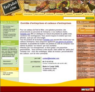 le 8 mars 2006Bon, j’en ai marre de voir du testadaz de partout, je crois que je vais finalement finir par commander. Un petit conseil d’achat dans la partie charcuterie ? tellement de produits qu’on sait pas tellement quoi prendre. Et l’idée de cadeaux clients me semble une très bonne idée, ainsi à table celà fait l’occasion de parler de la socièté qui à offert ce délice, à condition que le produit soit si bon que tout le monde demande d’ou il vient.