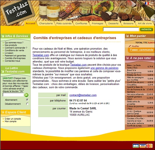 Apparition d’une nouvelle page sur Testadaz.com, histoire de faire bon accueil aux comités d’entreprises qui nous font confiance pour leurs cadeaux-clients, opérations de promotion ou remerciements-salariés… Avec dans l’idée d’inciter de nouveaux CE et de nouvelles entreprises à devenir nos clients 🙂